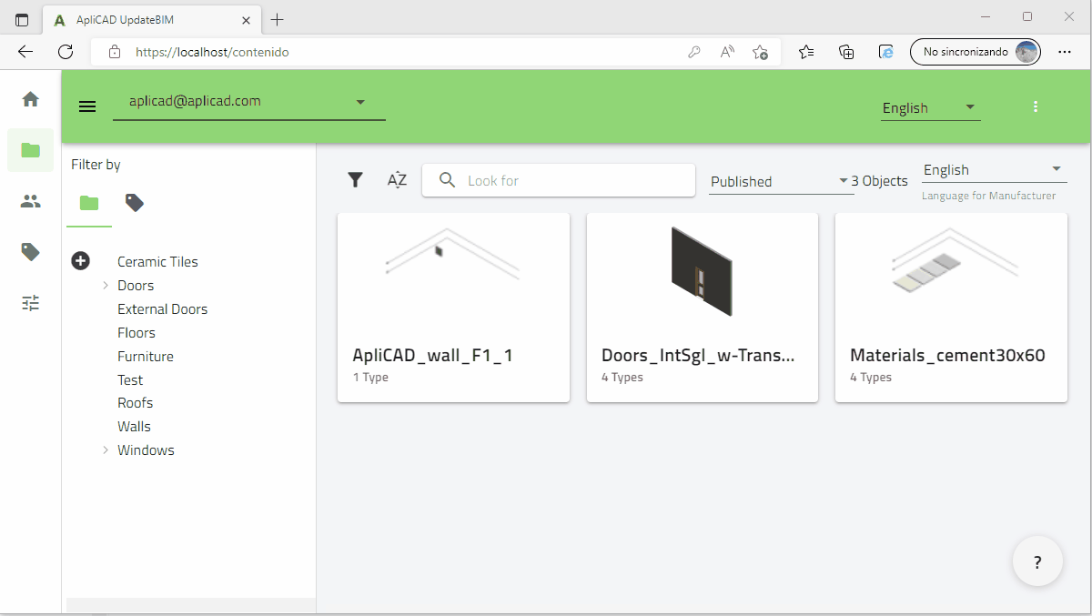 A base para colocar o objeto no UpdateBIM são as pastas.